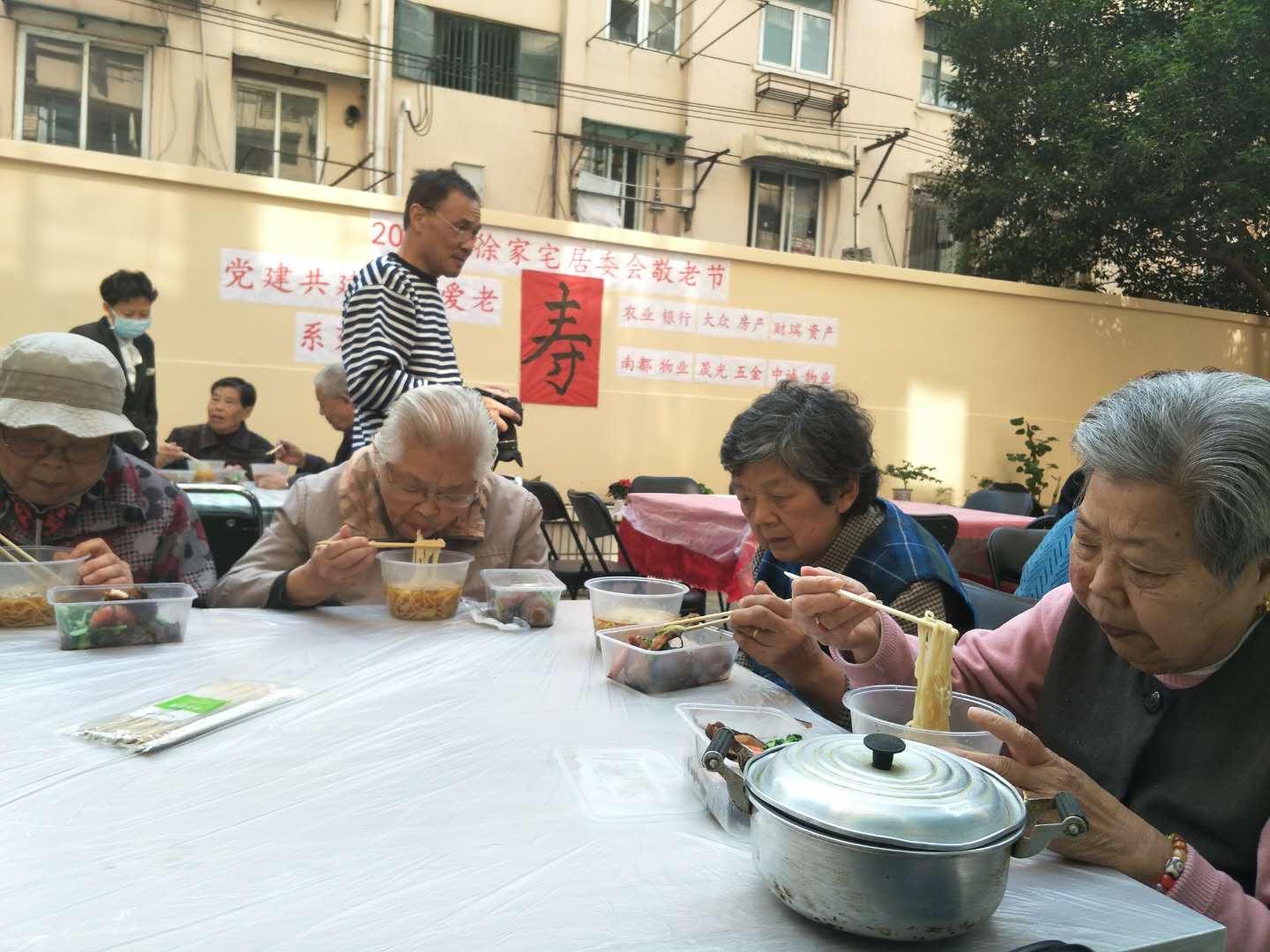 博天堂AG房产的职工志愿者中午早早地赶到居委会协助社区,把一碗碗热气腾腾象征着健康长寿的面条伴随着声声的祝福,送到老人们的面前,并且亲切地拉起了家常。