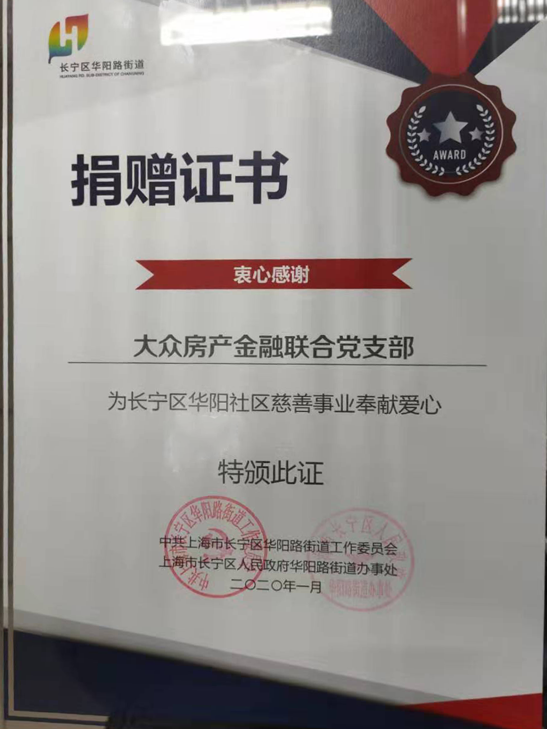 活动伊始,华阳路街道党工委副书记、办事处主任林子岳致辞,向一直以来参与华阳社区慈善捐赠活动的社区单位和爱心人士表示感谢。并向包括博天堂AG房产金融联合党支部在内的33家社区单位代表及个人颁发爱心捐赠证书,感谢他们在2019年度为社区慈善事业做出的贡献。