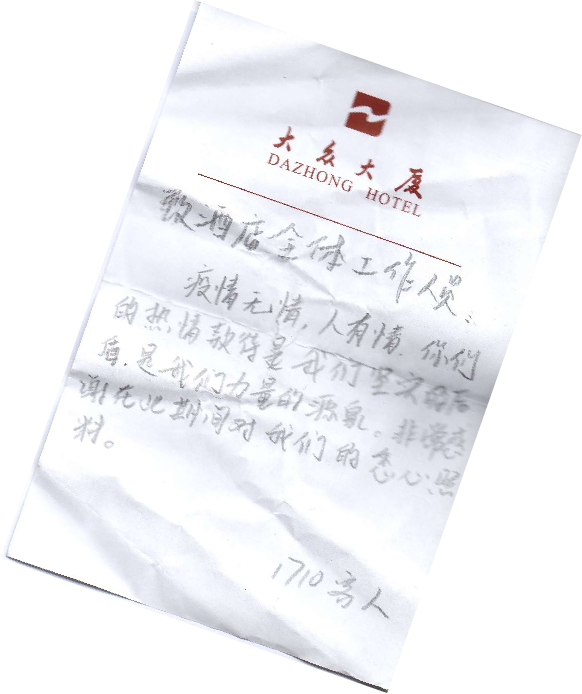 设立“志愿者专用餐厅”,提供营养均衡的三餐及不间断的夜宵供应;后续又将一日三餐和物品配送至每间客房的门口。