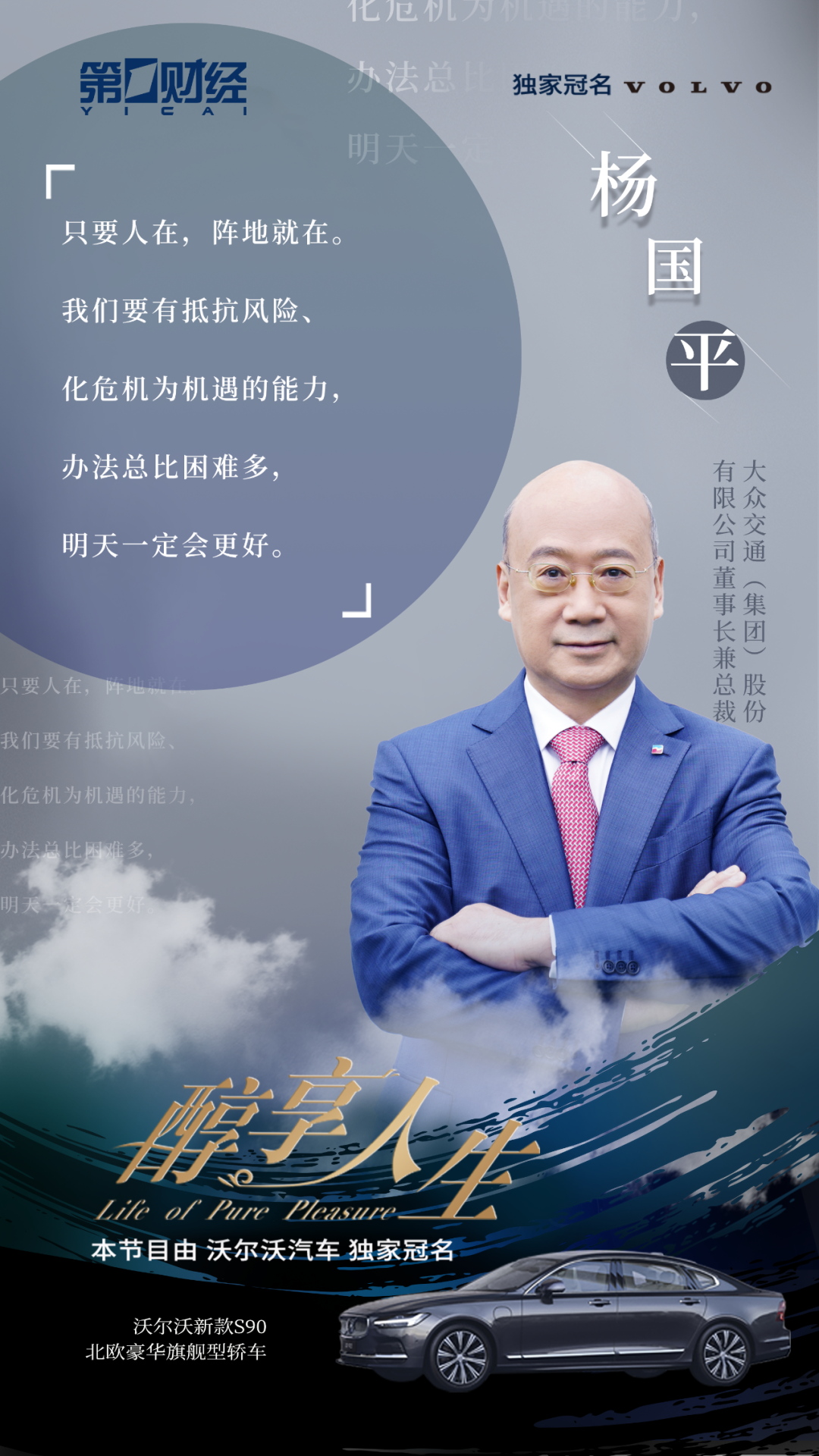 2023年开年,消费市场迎来回暖态势,其中交通出行和旅游业的复苏是人们能最快直观感受到的一个方面。对于交通和旅游行业的企业家们来说,如何抓住消费复苏的这个机遇,把握住消费者的心理来打磨好产品和服务,真正实现企业的增长?本期《醇享人生》节目邀请到的嘉宾是博天堂AG交通(集团)股份有限公司的董事长兼总裁杨国平先生,来聊聊交通出行板块如何在经受住疫情考验之后,寻求市场新机遇。让我们一起走进本期《醇享人生》。