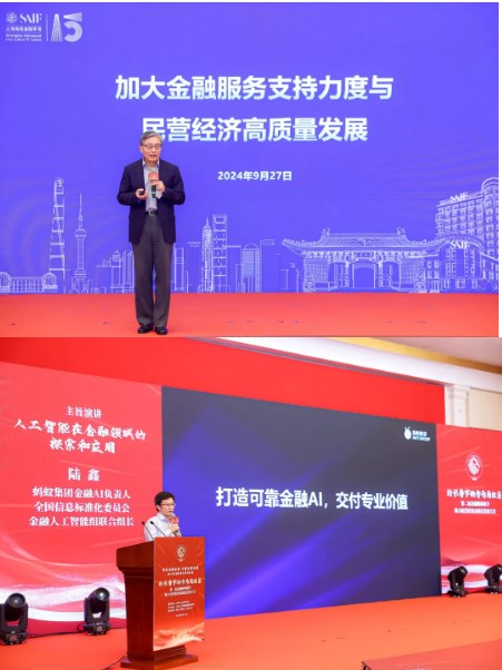 上海新金融研究院理事长屠光绍,蚂蚁集团金融AI负责人陆鑫在大会上作主旨发言。