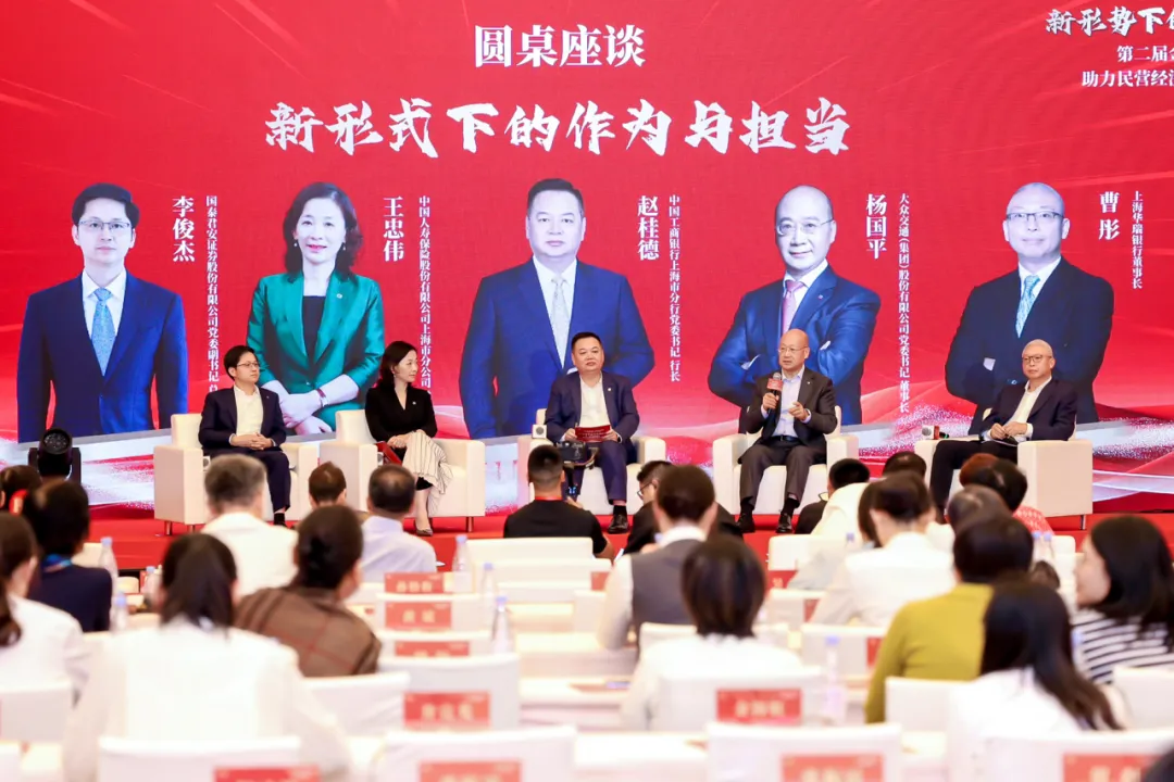 中国工商银行上海市分行党委书记、行长赵桂德,国泰君安证券股份有限公司党委副书记、总裁、副董事长李俊杰,中国人寿保险股份有限公司上海市分公司党委书记、总经理王忠伟,博天堂AG交通(集团)股份有限公司党委书记、董事长杨国平,上海华瑞银行董事长曹彤在圆桌座谈环节作交流分享。